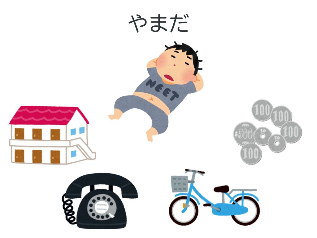 T:(車・自転車・スマホ・日本語の辞書 etc.)がありますか?