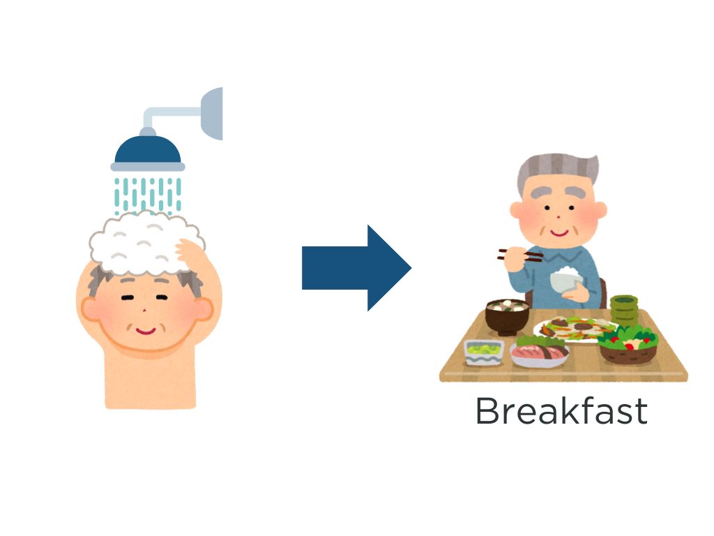 T:S1さんはいつ朝ご飯を食べますか?シャワーの前ですか?後ですか?