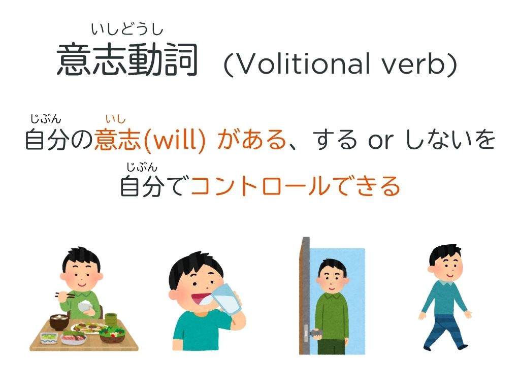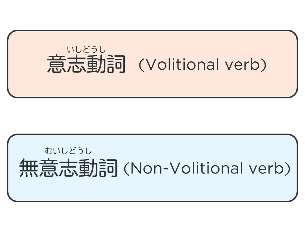 動詞は意志動詞と無意志動詞の2つのグループがあります。「意志」の意味はwillです。