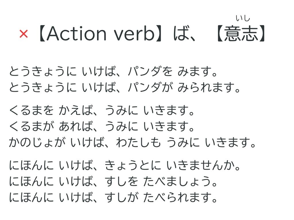 「車を買えば、海に行きます」の「買います」は「Action verb」ですから、使えません。