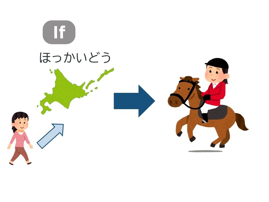 T:「北海道に行けば、馬に乗ります」はだめです。