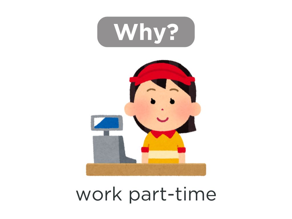 S2:どうして(日本語を勉強しますか・アルバイトをしますか・お金がありませんか・早く帰りますか・今の会社で働きますか・Nが好きですか・東京に来ましたか)?