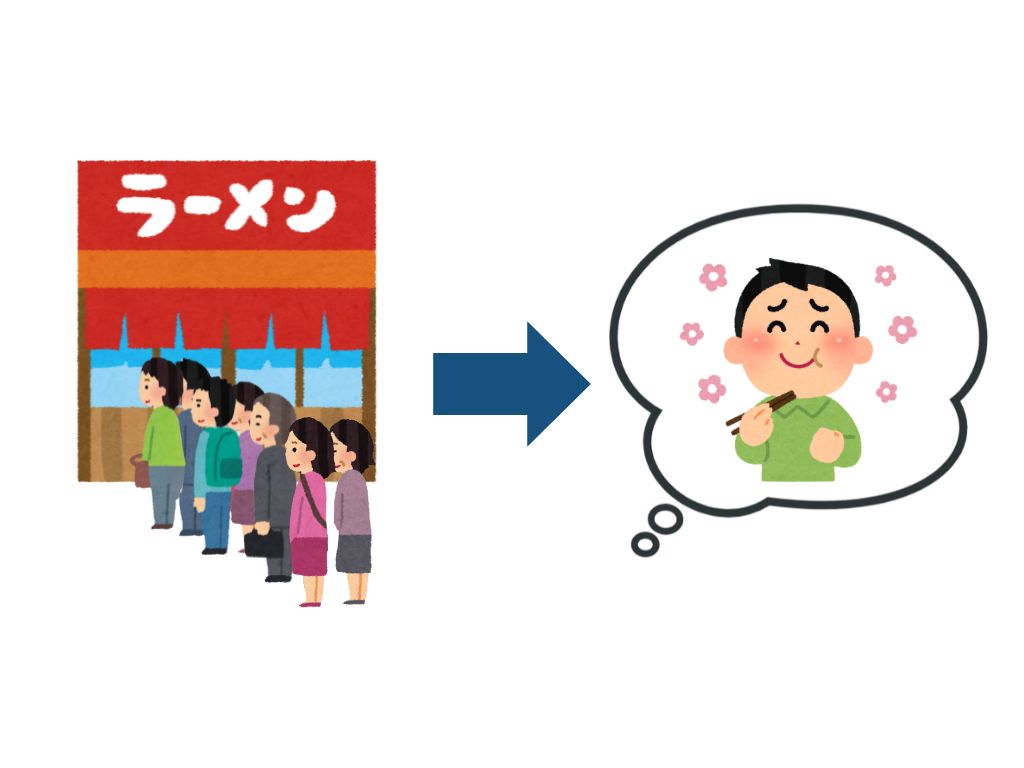 T:あのラーメン屋はいつもたくさん人が並んでいます。