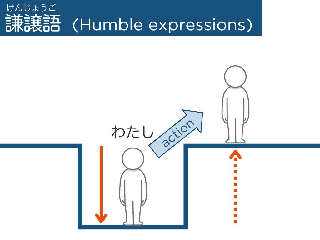 T:謙譲語は自分を低くする言葉です。私が自分より偉い人にするアクションに使います。
