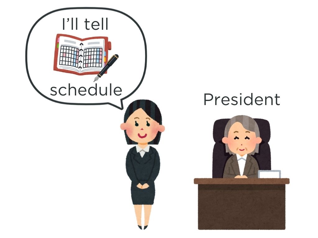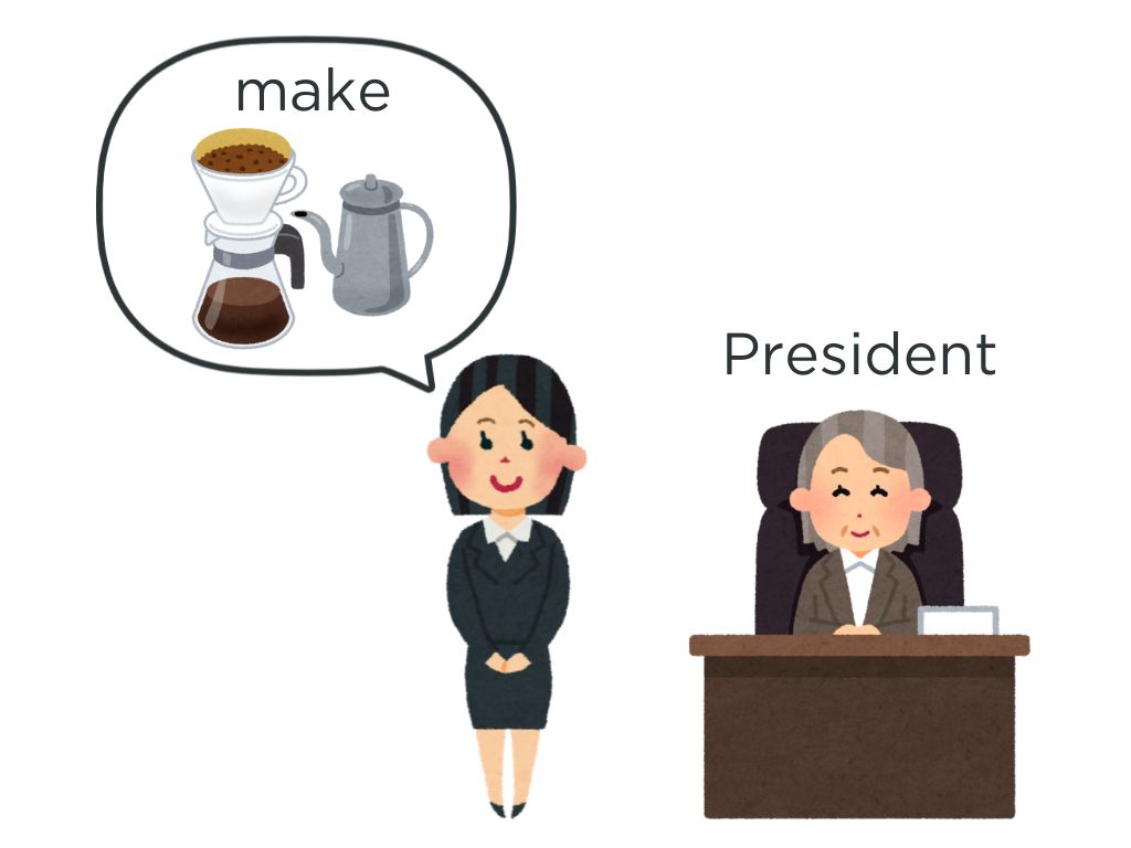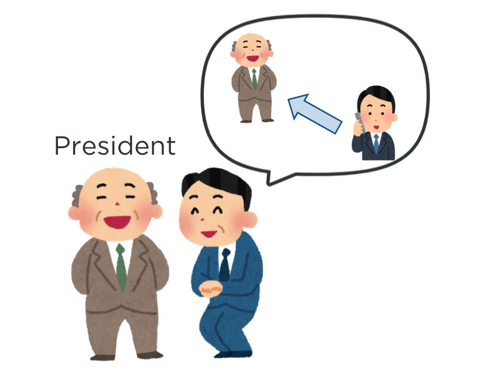 T:でも、この人は社長ですから、もっと丁寧に言わないといけません。敬語を使います。