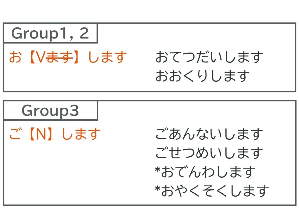 T:グループ1とグループ2は「お〜します」になります。言ってください。持ちます。