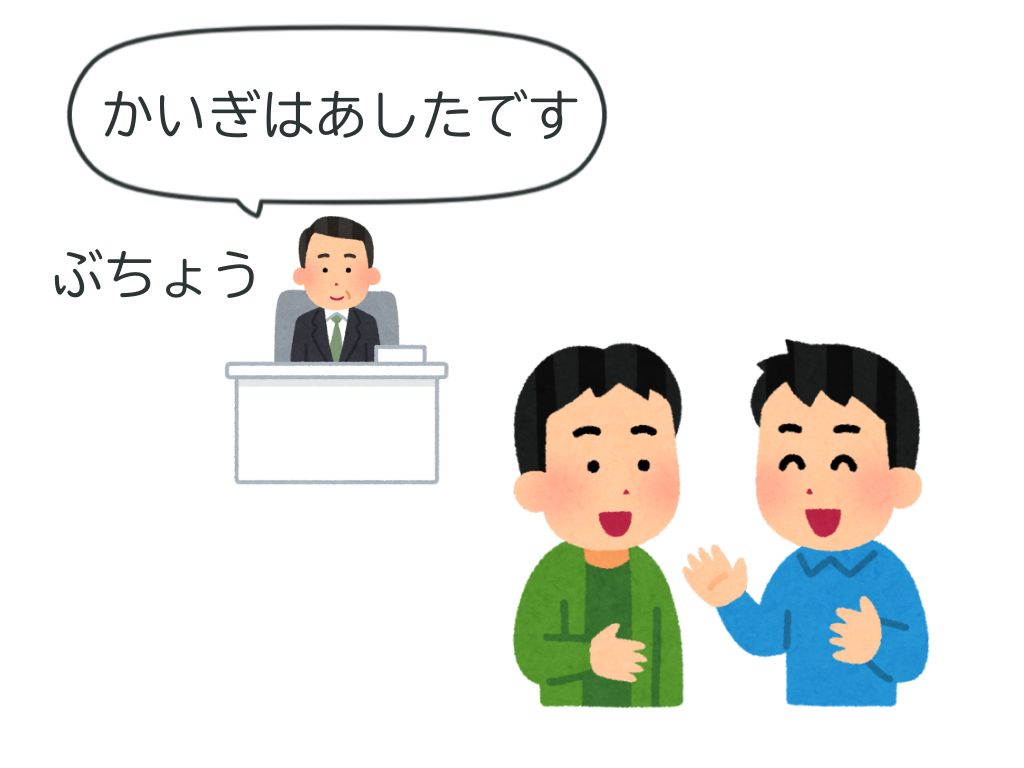 T:会議です。