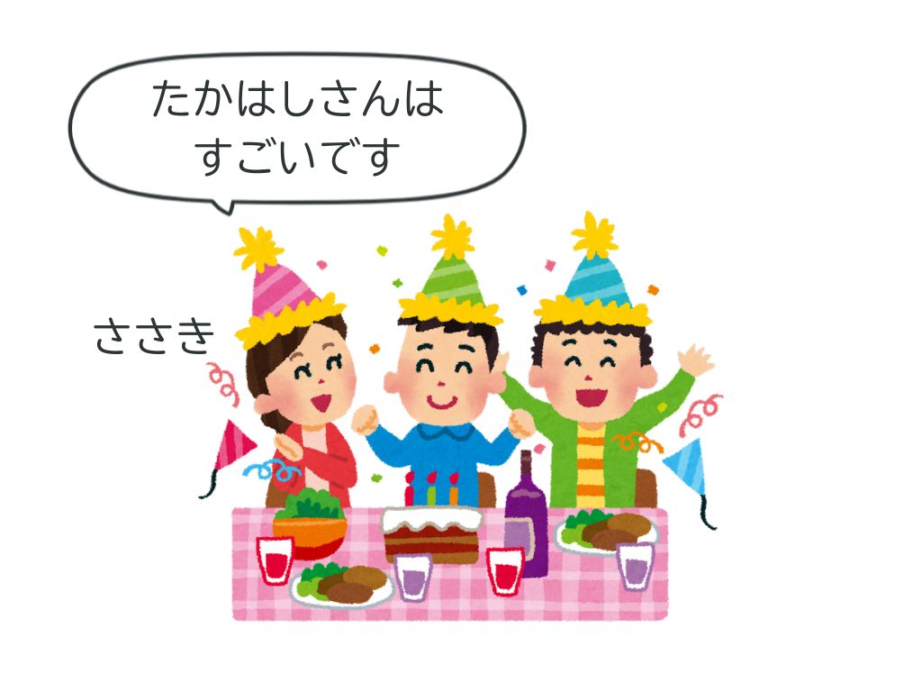 →PCを見せ、どんなことを言うか考えさせてSに会話を作らせる