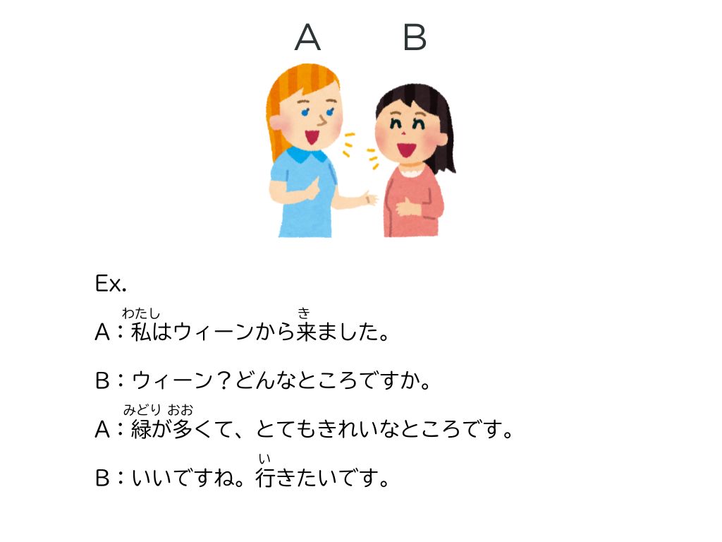 →自分の町に言葉を変えて会話を作らせる。