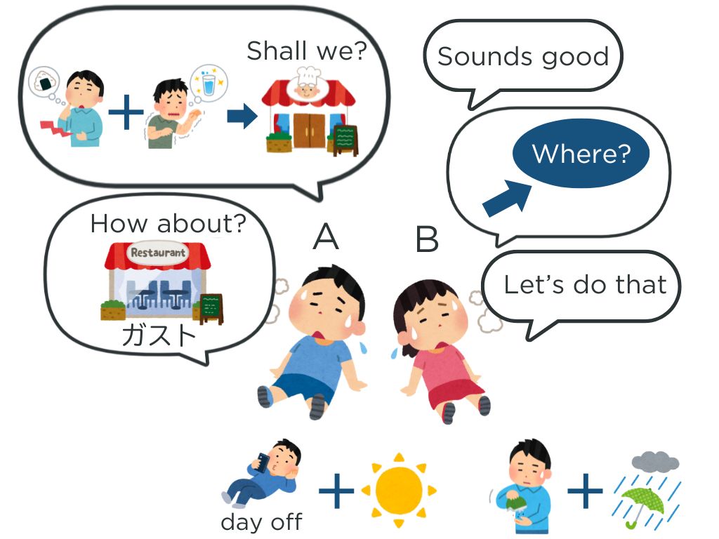 →S1がA、S2がBで会話(Sが一人の場合TがA、SがBで会話)