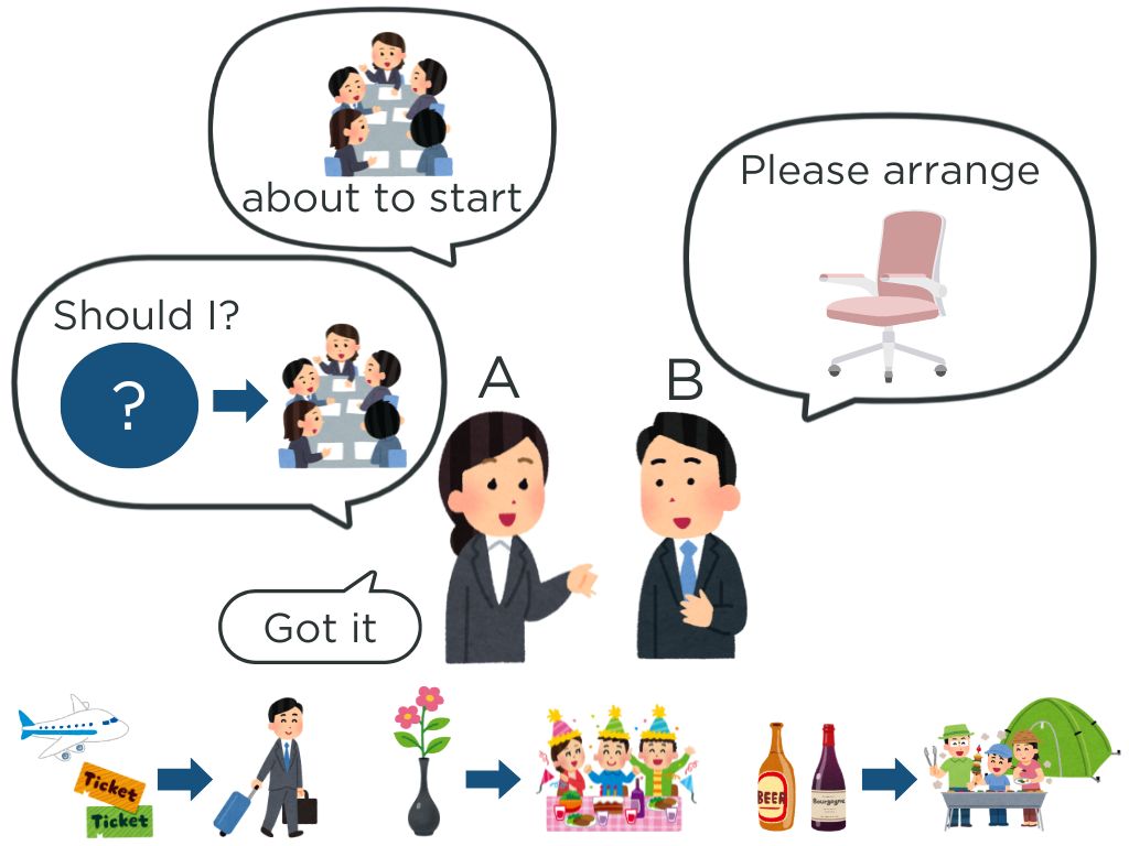 →S1がA、S2がBで会話(Sが一人の場合TがA、SがBで会話)
