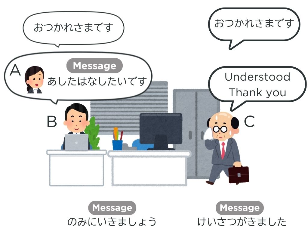 →S1がA、S2がBで会話(Sが一人の場合TがA、SがBで会話)