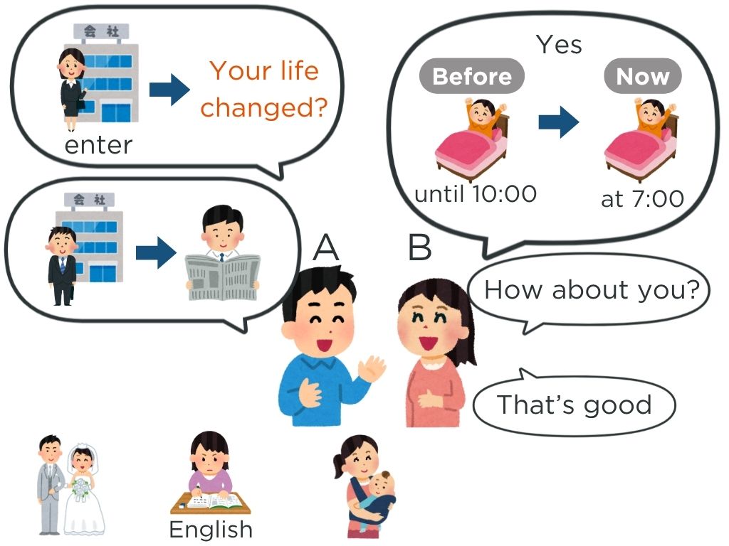 →下の変化に言葉を変えて会話を作らせる。