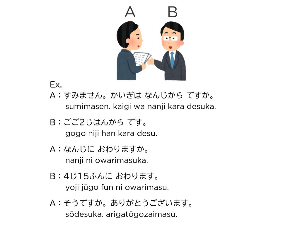 →下の絵のイベントと時間に置き換えて会話を行う。