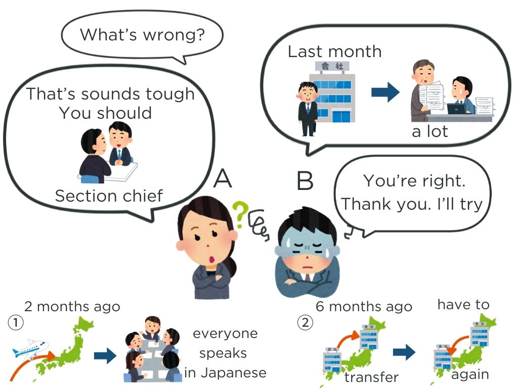 →S1がA、S2がBで会話(Sが一人の場合TがA、SがBで会話)