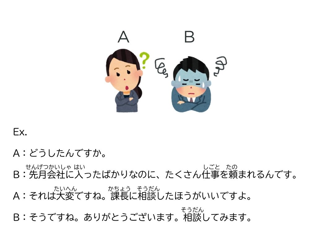 →自由に言葉を変えてオリジナル会話を作らせる。