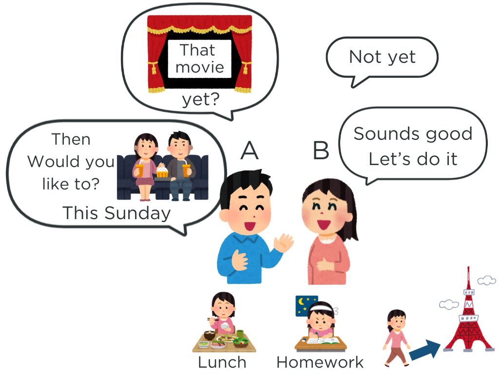 →自由に言葉を変えてオリジナル会話を作らせる。