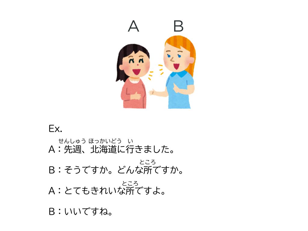 →下の場所に言葉を変えて会話を作らせる。