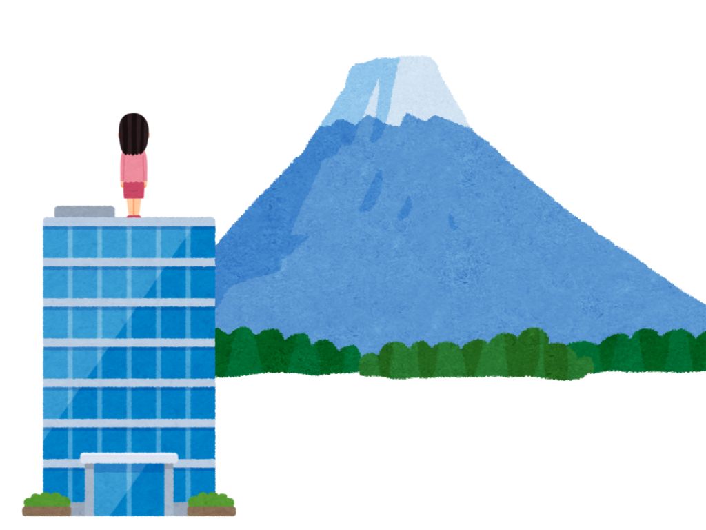 S:ビルの上から富士山が見えます。