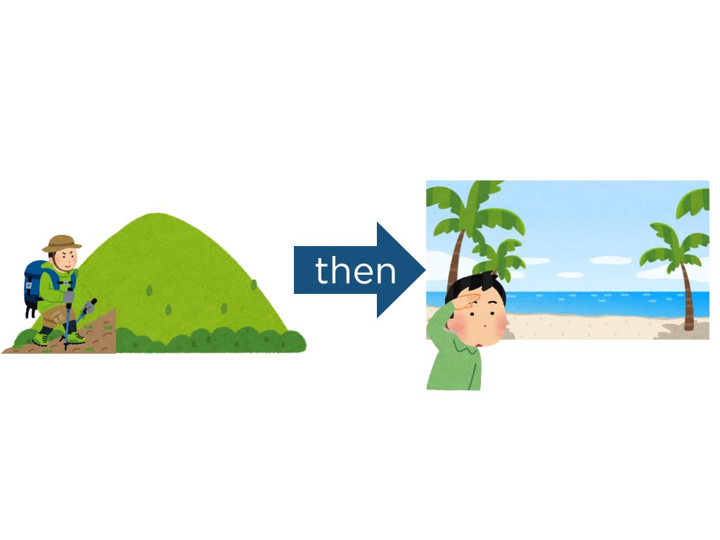 T:きれいな海が見たいですから、山に登ります。