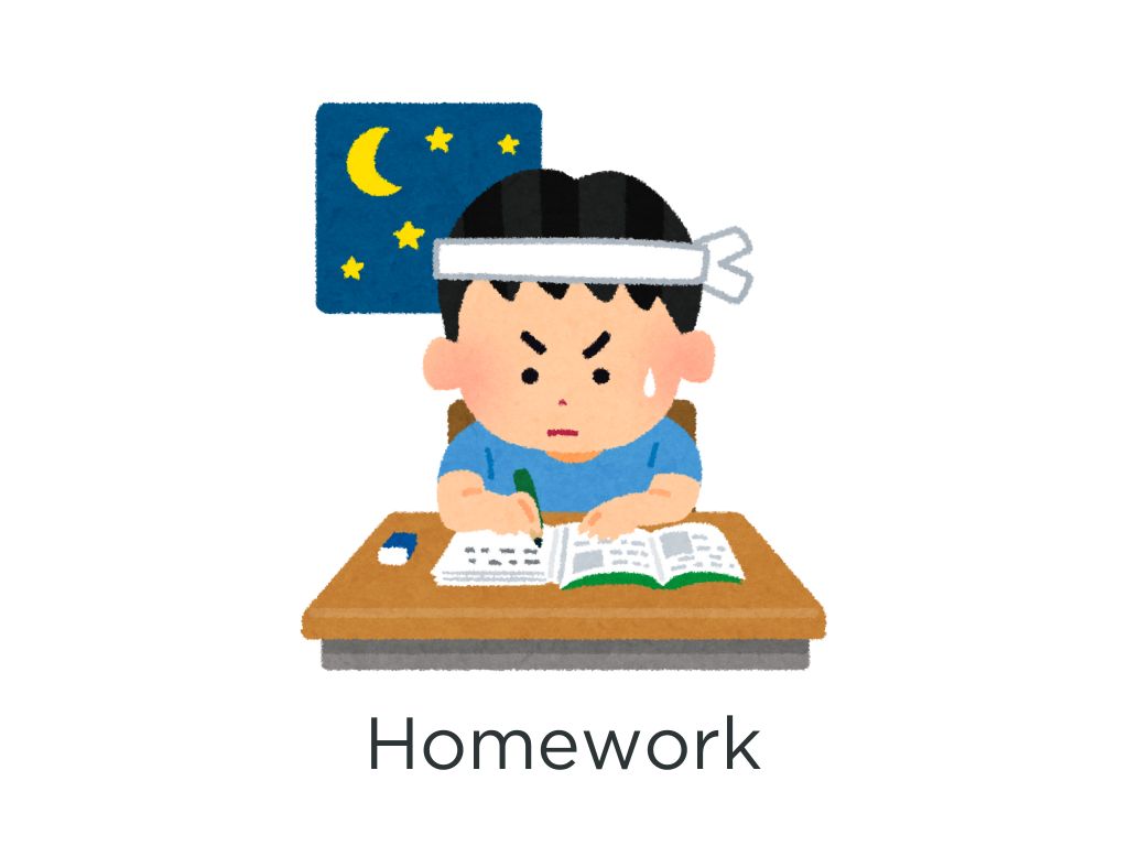 T:晩ごはんを食べる、宿題をする、手紙を送る、