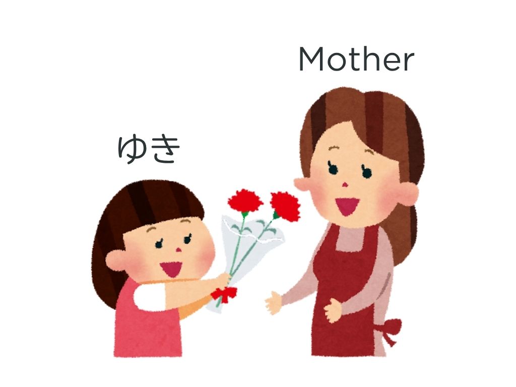 S:ゆきちゃんはお母さんに花をあげます/もらいます。