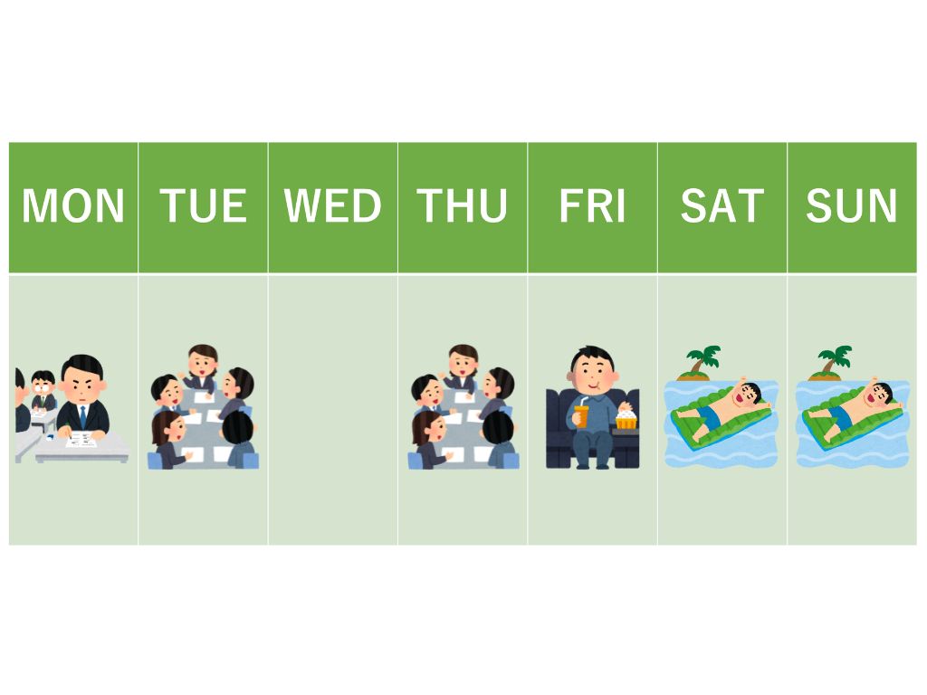 T:会議は何曜日ですか?