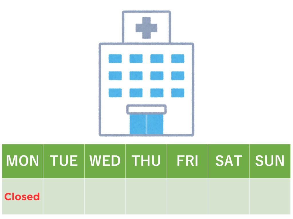 T:病院の休みは何曜日ですか?