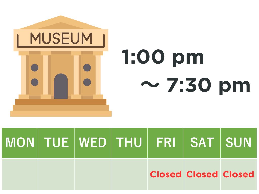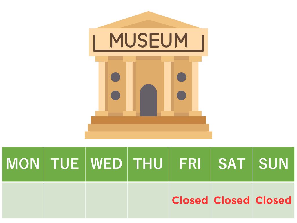 T:美術館の休みは何曜日ですか?