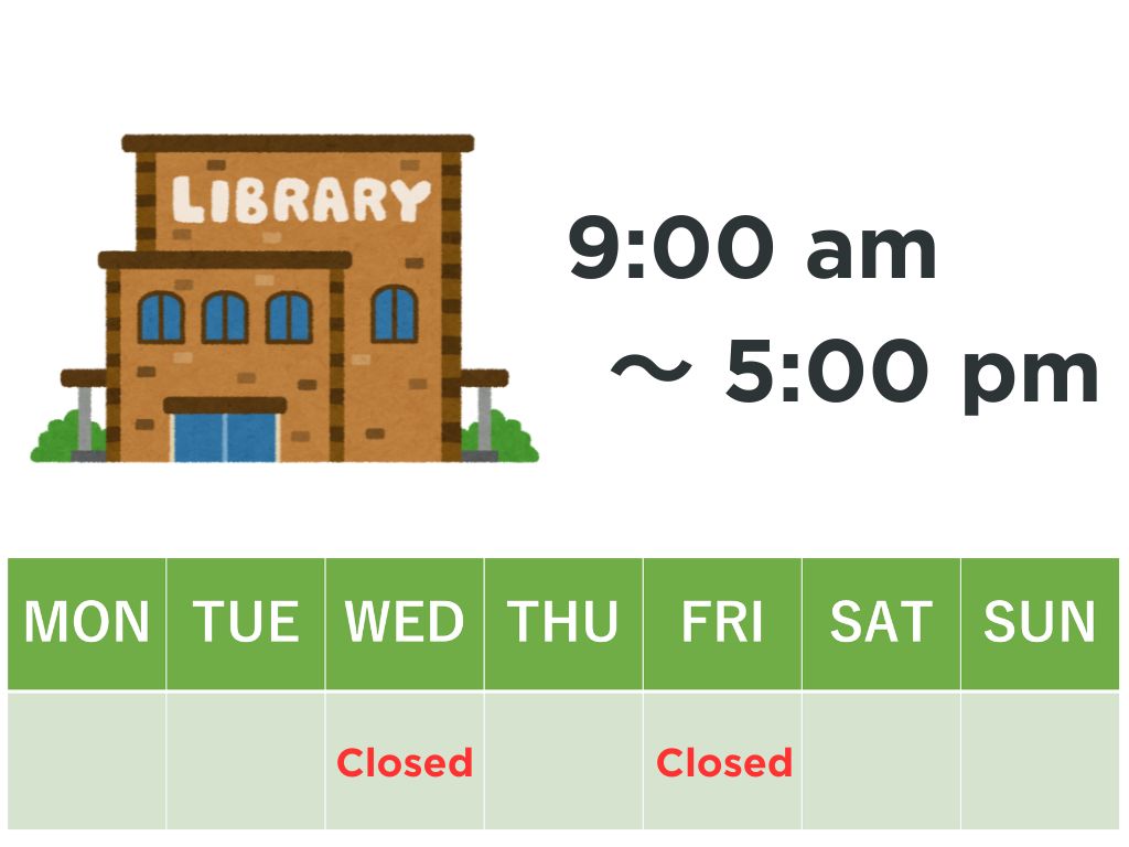 T:S1さん、図書館は何時から何時までですか?