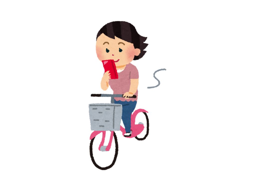 S:携帯を見ながら自転車に乗っています。