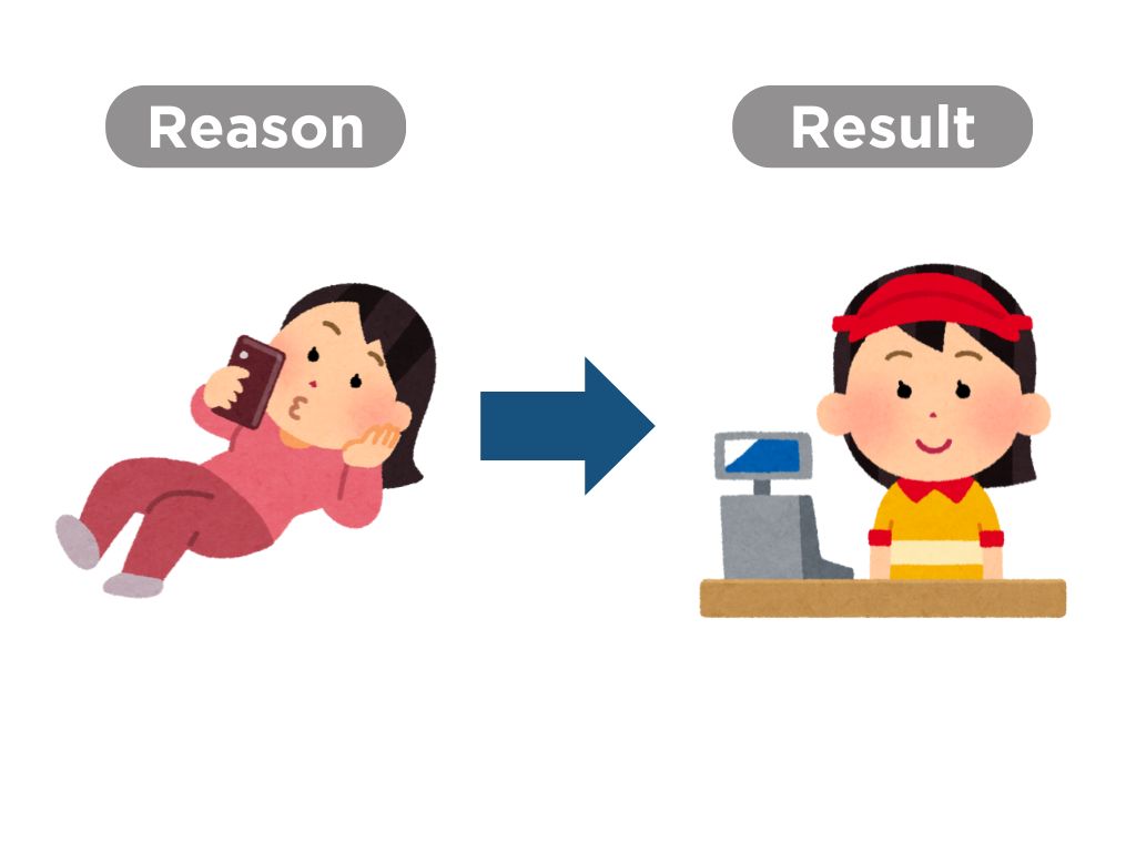 T:「から」は「どうしてですか?」と質問されたときによく使います。