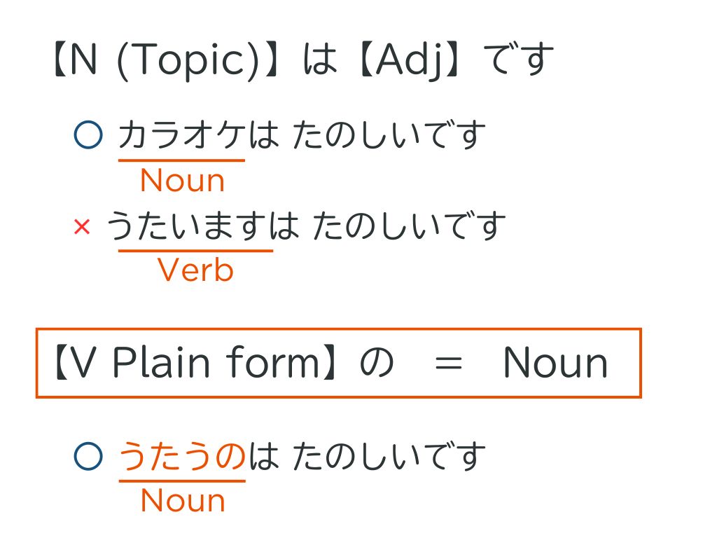 カラオケは楽しいです。はOKですが、歌いますは楽しいです。はだめです。