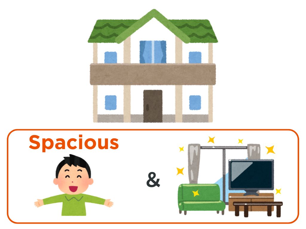T:重いです+遅いです、軽いです+早いです、広いです+きれいです、暗いです+狭いです、甘いです+おいしいです、頭がいいです+親切です、髪が長いです+目が大きいです、背が高いです+足が長いです、明るいです+元気です、広いです+きれいじゃありません、頭がいいです+親切です