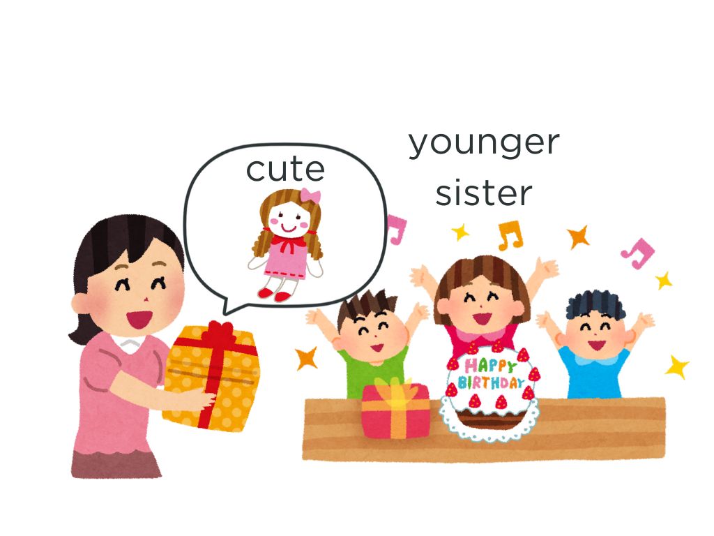 S:妹の誕生日のお祝いにかわいい人形をやります。