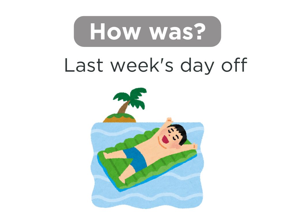 T:S2さん、(昨日/おととい/先週の~曜日)は(雨・いい天気・仕事・休み)でしたか?