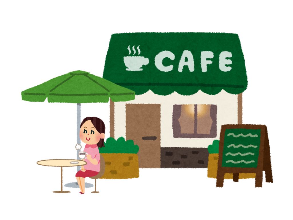 S:喫茶店の外でコーヒーを飲みます。