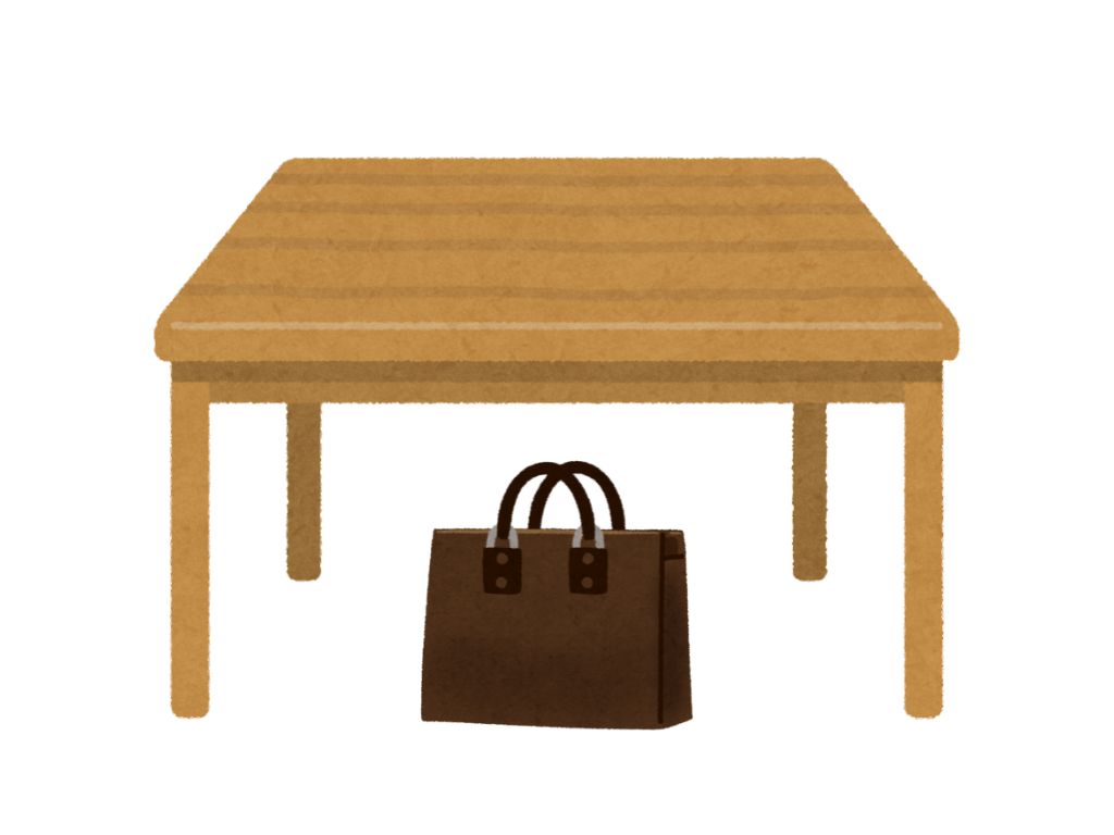 S:テーブルの下にかばんがあります。