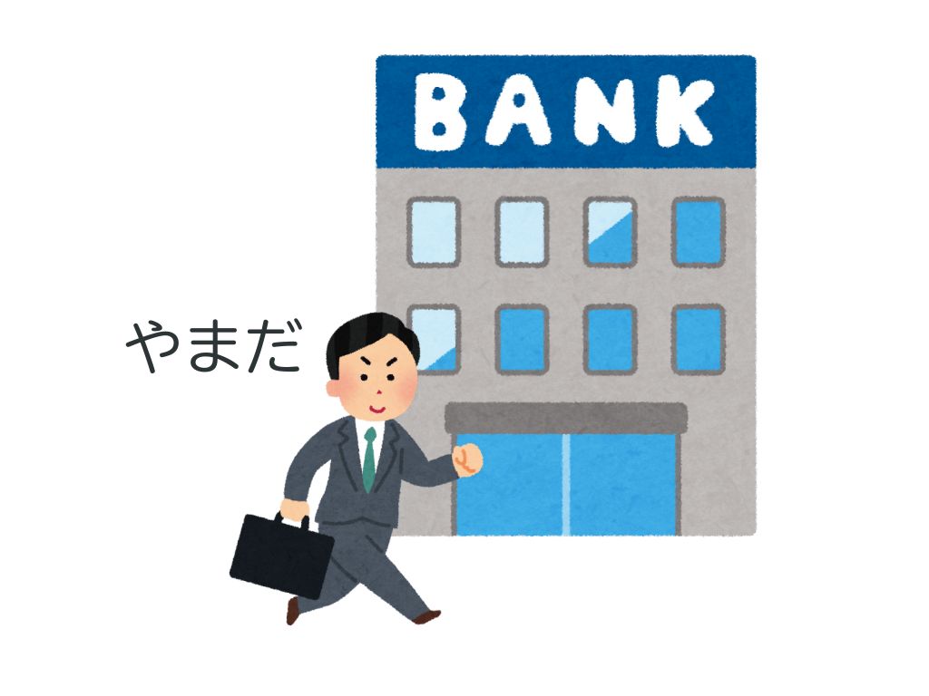 S:銀行の前に山田さんがいます。