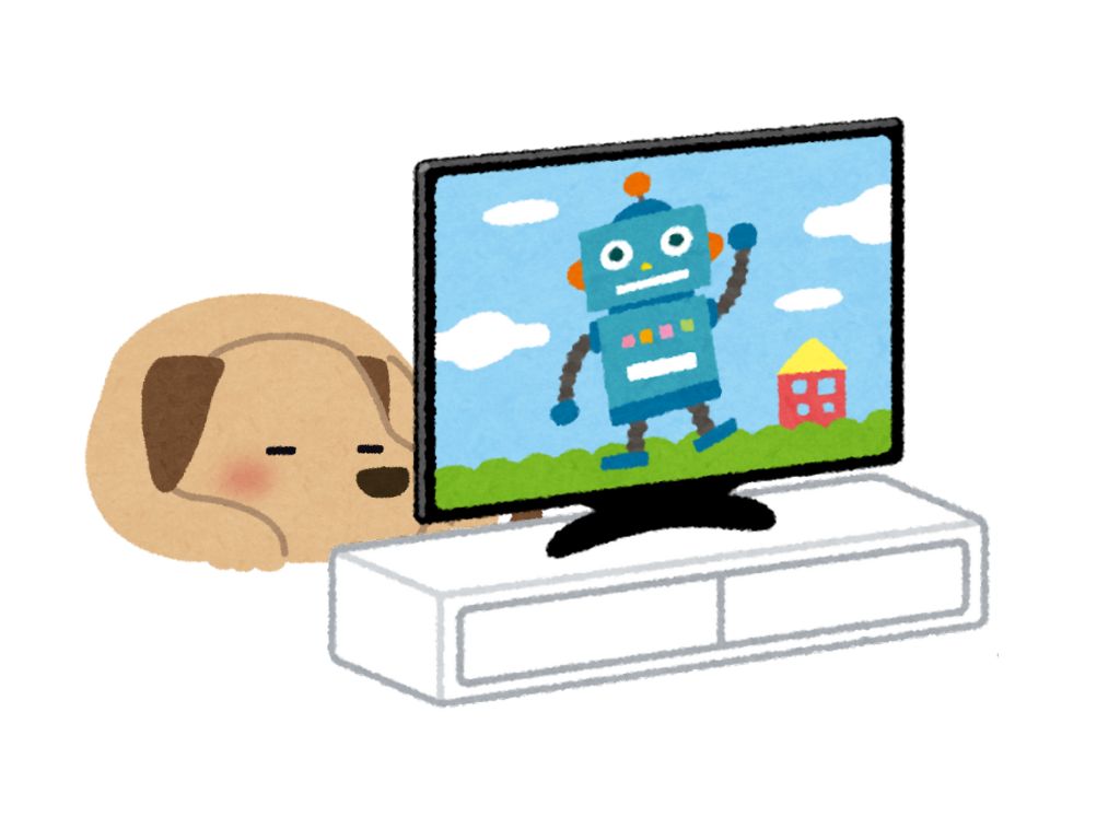 S:テレビの後ろに犬がいます。