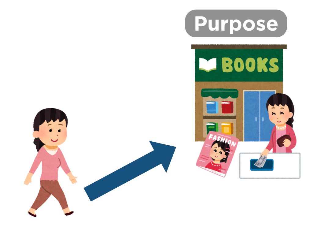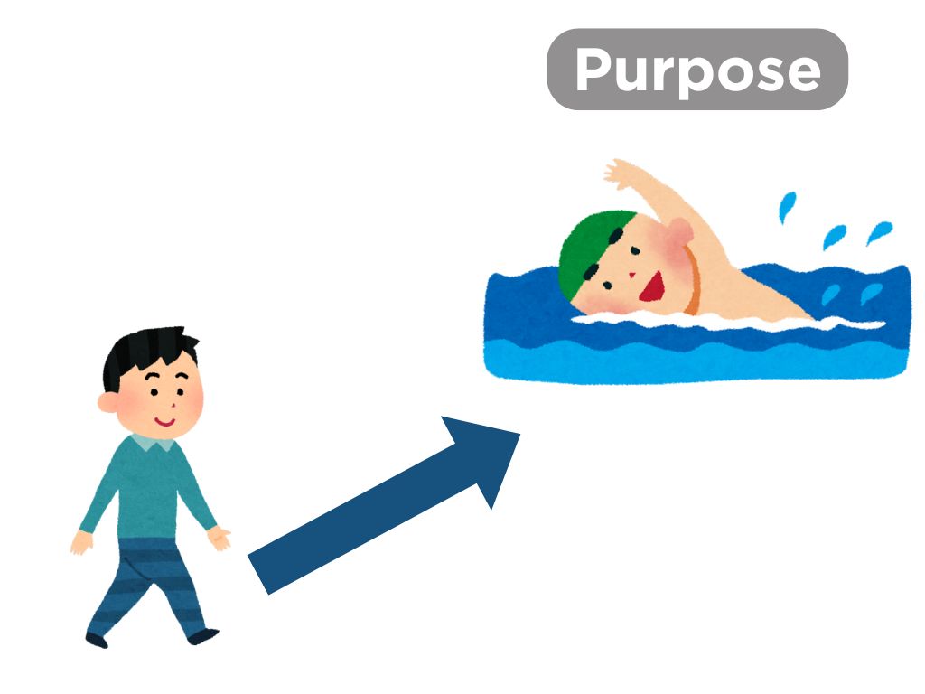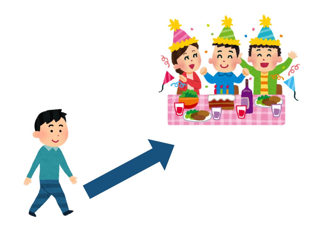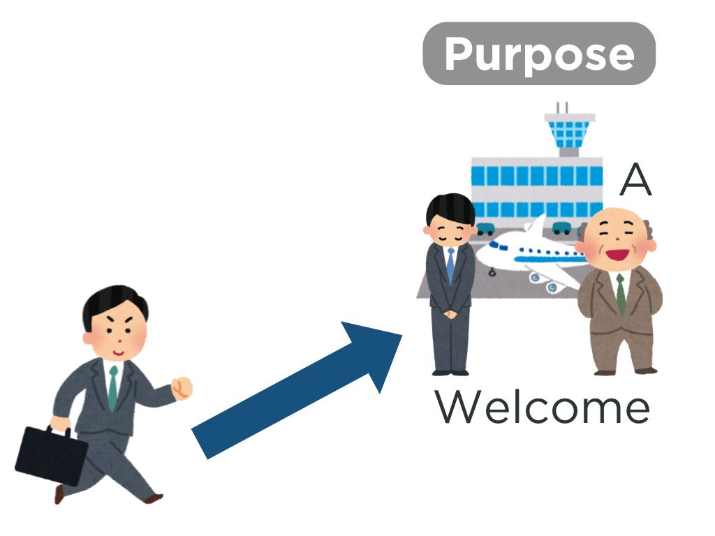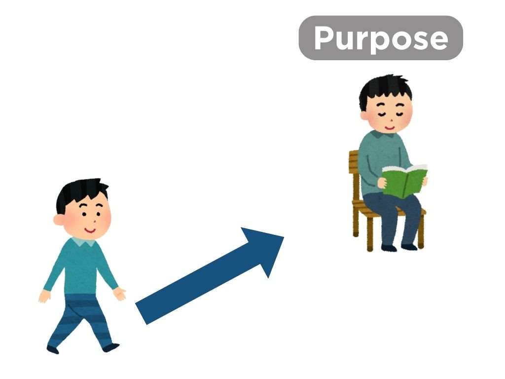 (「行く・来る・帰る」のPCを見せ、目的を指しながら、行動を言う)
