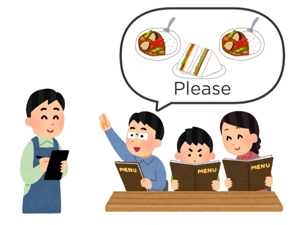 S:カレーを二つとサンドイッチを一つください。