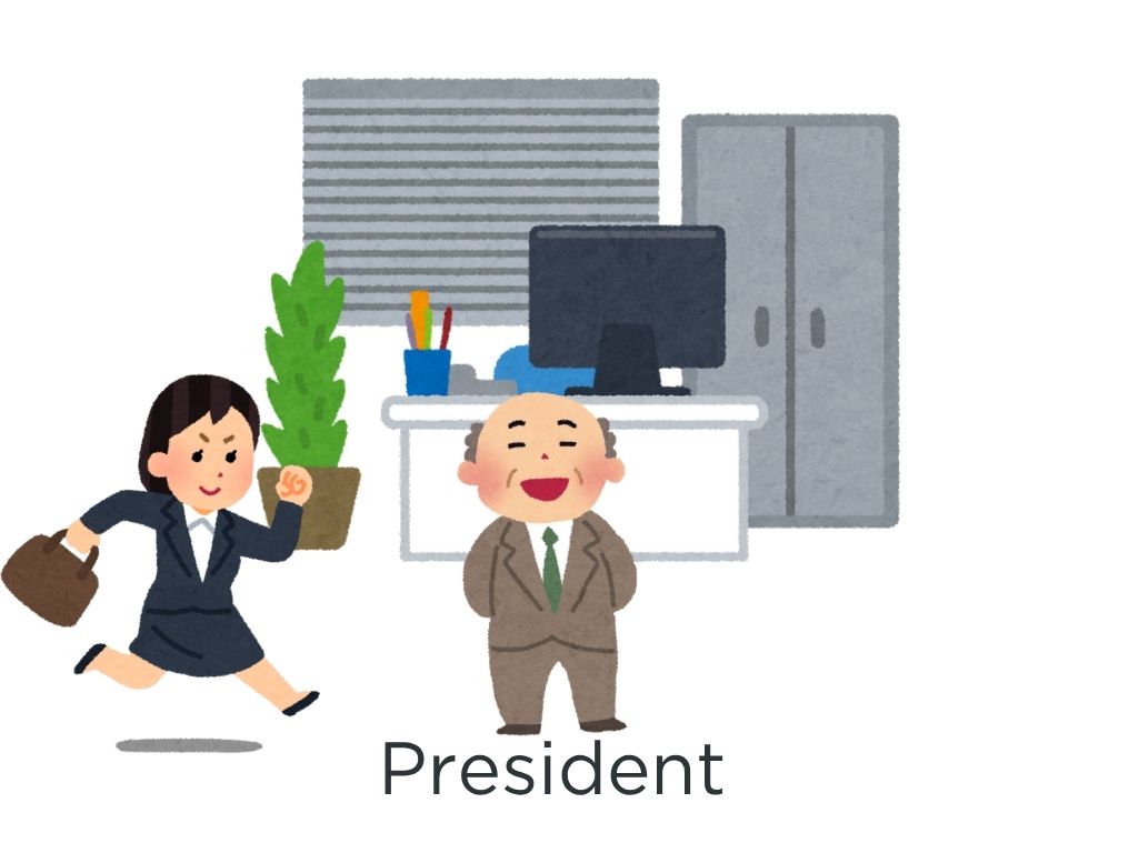 S:会社に来たとき、社長に会いました。