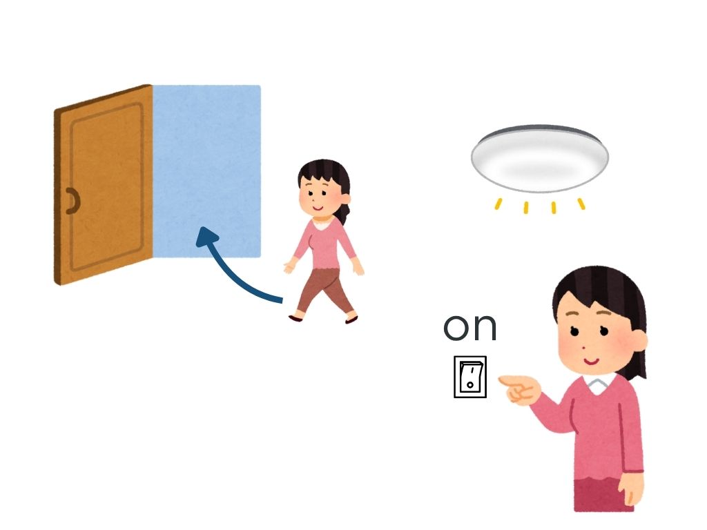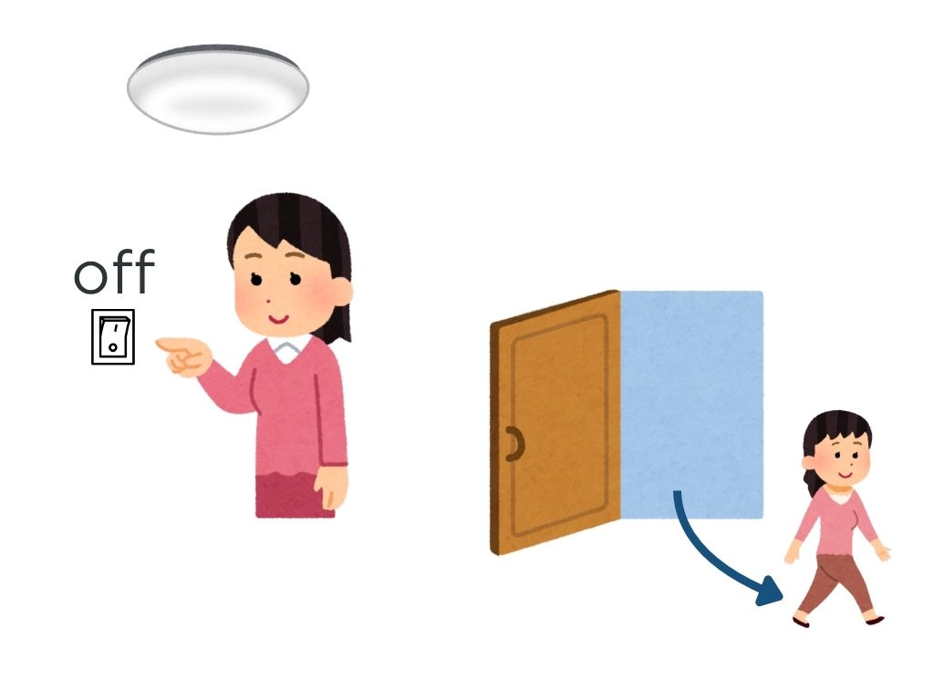 S:部屋を出るとき、電気を消しました。