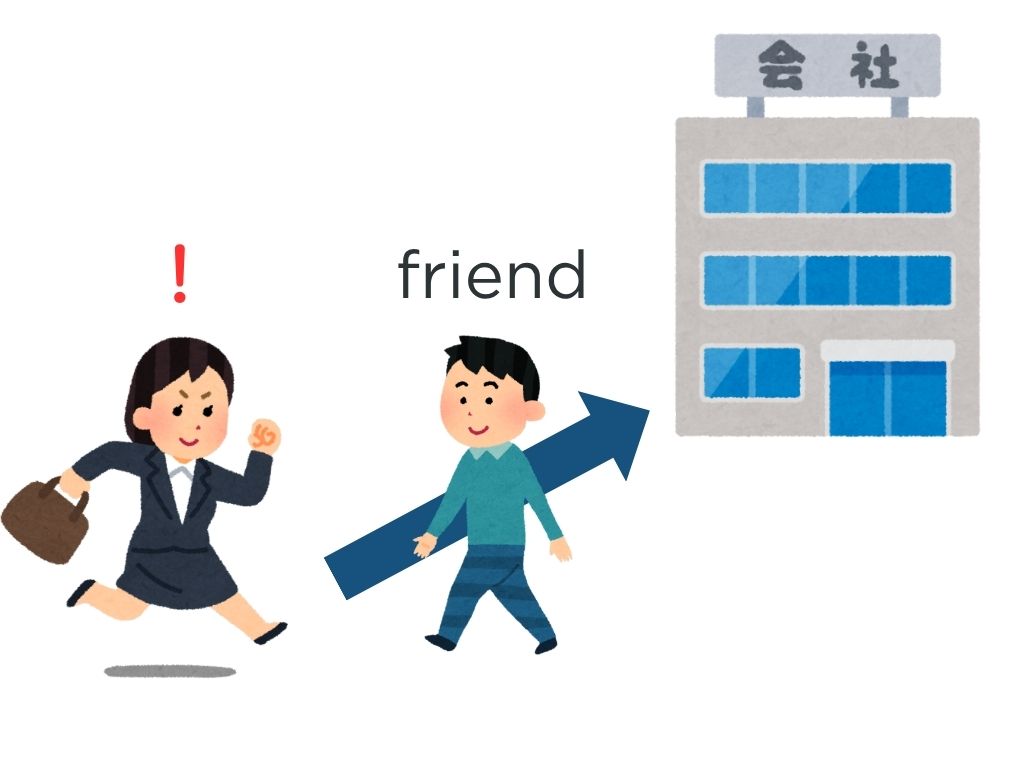 S:会社に来るとき、友達に会いました。