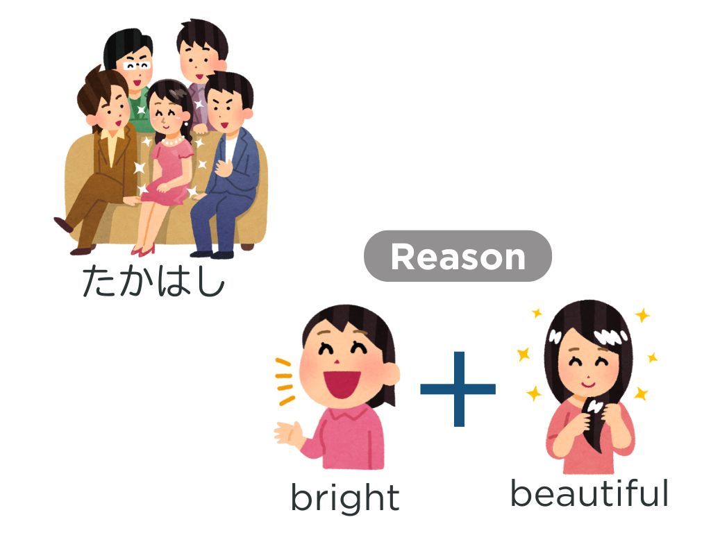 「~し、~し、~」は理由ではないことに使うと不自然なので、「高橋さんはいい人です」または「高橋さんは人気があります」、その理由は「明るいし、きれいですから」という会話の流れにした方がいいと思います。
