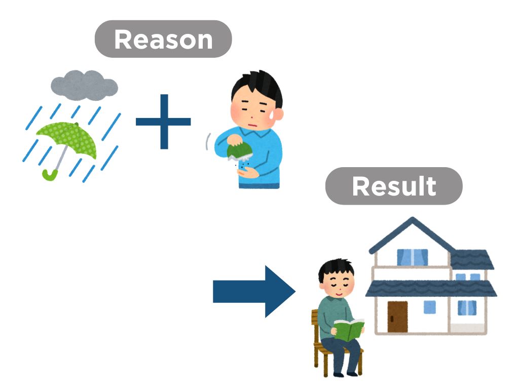 T:雨も降っているし、お金もないし、それで、うちで本を読みます。と言ってもいいです。