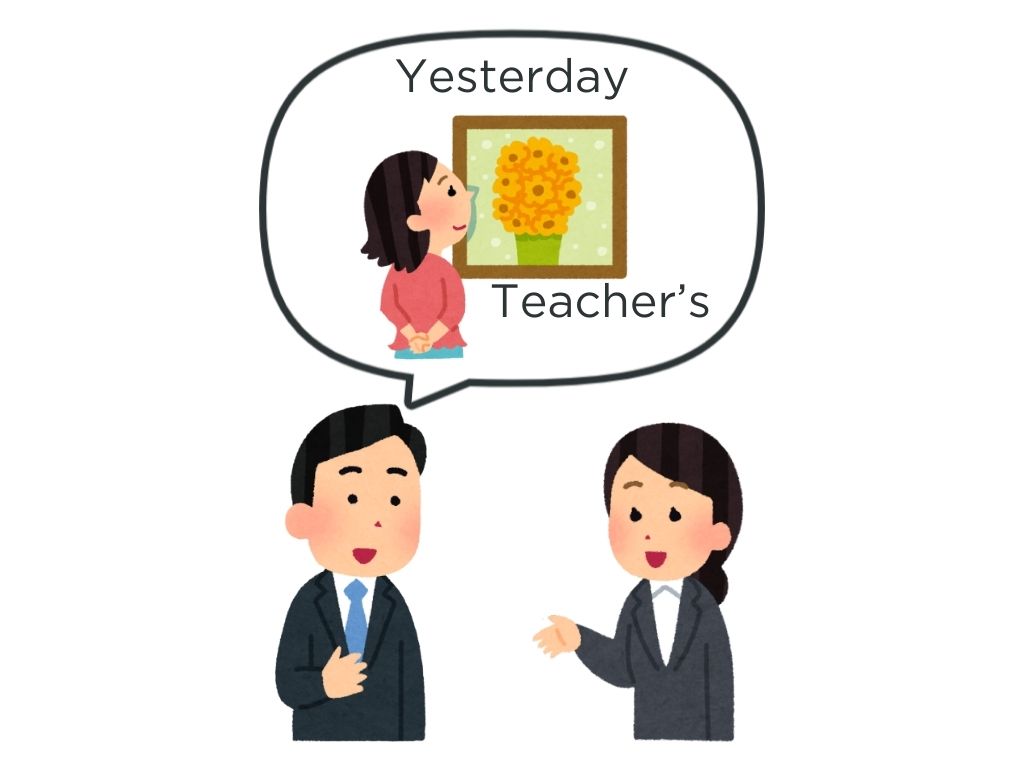 T:部長の写真を見ました、社長の奥様に会いました、お客様の会社に行きます、先生にお土産をもらいました、部長に誕生日プレゼントをあげました、先生に話を聞きました