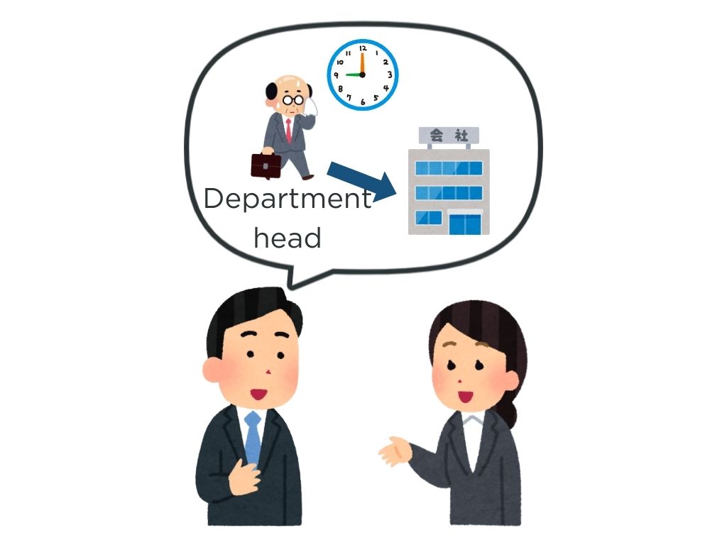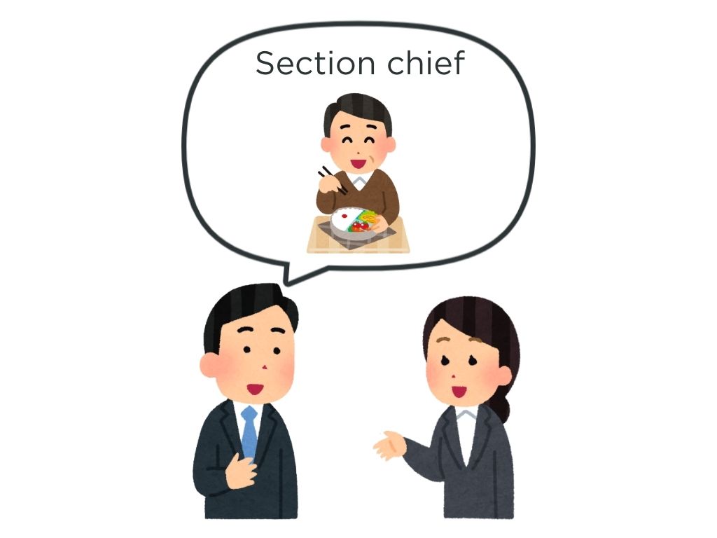 T:課長は会議室にいます、部長は映画を見ました、社長は毎週ゴルフをします、社長は日本料理を食べました、先生は毎日お酒を飲みます、先生は私の家族を知っています、社長は私の住所を知りません、部長はがんばれと言いました、先生はお土産をくれました、日本に行ったことがありますか?、今、何をしていますか?、社長の奥様は何を飲みますか?