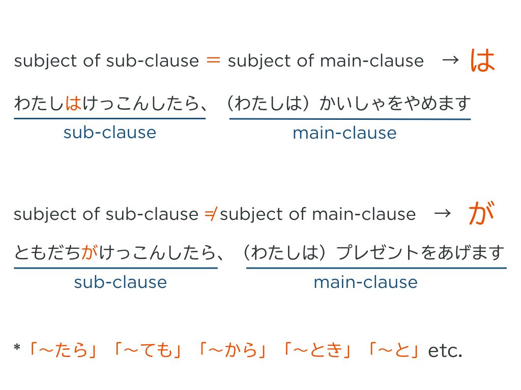 サブとメインのサブジェクトが同じです。「は」を使います。